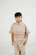 Motif yang terinspirasi dari tameng perang suku asmat sebagai bentuk doa kepada dewa-dewa untuk keselamatan suku asmat sebelum dimulainya perang. Bentuk segitiga yang sebagai simbol stabilitas karena bentuknya yang meruncing keatas dapat menjadi suatu penunjuk arah atas sebuah pencapaian dan tujuan. Bentuk segitiga kebawah yang menyimbolkan ke feminiman dan sebagai sosok yang sederhana.