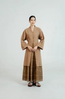 Koleksi Ranum Dama Kara lahir dari pemaknaan akan perjalanan hidup seperti motif yang tidak selalu lurus dan tidak tergesa, namun saling terhubung dan saling menyempurnakan. Setiap helaian dirangkai melalui teknik tenun yang dikerjakan dengan penuh ketelitian, menyatukan benang demi benang menjadi satu kesatuan yang utuh. Tenun menjadi bahasa yang merekam proses: tentang kesabaran, keterhubungan, dan keindahan yang tumbuh perlahan, sebagaimana hidup itu sendiri.