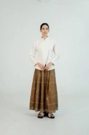 Koleksi Ranum Dama Kara lahir dari pemaknaan akan perjalanan hidup seperti motif yang tidak selalu lurus dan tidak tergesa, namun saling terhubung dan saling menyempurnakan. Setiap helaian dirangkai melalui teknik tenun yang dikerjakan dengan penuh ketelitian, menyatukan benang demi benang menjadi satu kesatuan yang utuh. Tenun menjadi bahasa yang merekam proses: tentang kesabaran, keterhubungan, dan keindahan yang tumbuh perlahan, sebagaimana hidup itu sendiri.